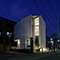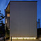現在は、室内への視線を遮り、知的な雰囲気を出すため、正面の壁は、道路に直接接する開口部が無い左官仕上げの壁で、夜は壁下の照明によってシンプルな壁と下部の植栽が浮き上がる。